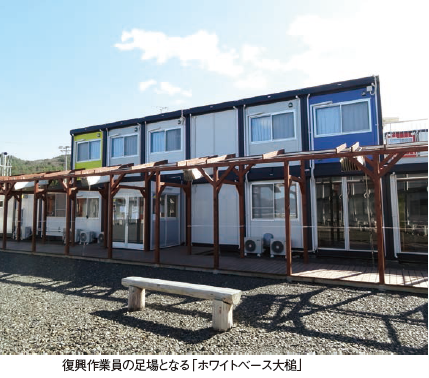 同社は、碇川前町長が選挙公約の1つとして掲げたもので、公民の連携を図り、復興のスピードを加速させることを狙って2013年4月に設立された。現在の主な事業は「ホワイトベース大槌」と呼ばれる復興作業員向けの宿泊施設。復興を加速するには作業員向けのホテルが必要だが、町内にはホテルが2つあったほかは、民宿や旅館が点在するだけ。