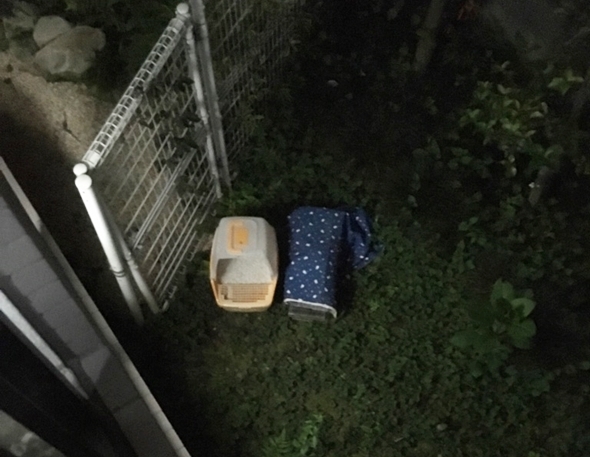 そしてアドバイスをもとに捕獲器の横に猫トイレを設置!そこからまた2時間半。