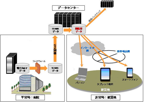 過去の震災では医療機関が被災するケースがあり、紙のカルテや電子カルテの診療情報が消失する事態が発生している。また、電子カルテの情報を別の場所にバッ クアップしていても、電子カルテシステムが動作する機器そのものが消失し、診療情報の復元に長い期間を要するだけでなく、震災時の緊急時医療や診療継続、 早期の診療再開に支障をきたすことが課題となっている。