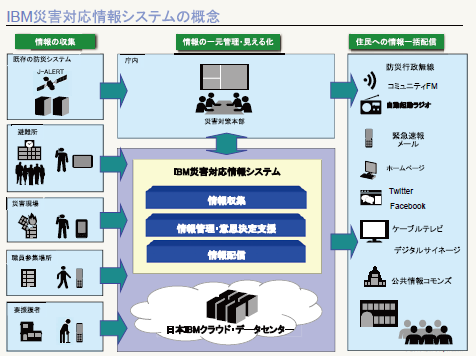日本IBMが開発した災害対応情報システムは、これらの情報をクラウド上で一元的に収集・管理できるというもの。組織内、組織間の情報共有や災害対応にかかわる迅速な意思決定を支援する。
