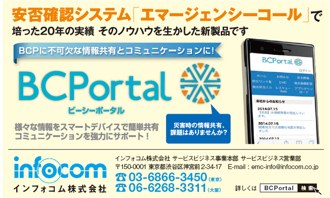 「緊急時ポータル」の更新のために複数社のシステムを検討した結果、インフォコムの「BCPortal」の導入を決めた。「BCPortal」を選んだ理由は、多様なデバイスに対応できるだけでなく、自分たちでメンテナンスするサーバーを必要とせず、常に最新の環境が提供されるクラウド型のサービスが自社のシステムに適していたためだ。また、インフォコム社のデータセンターで管理する安全で堅牢なシステムにもかかわらず、コストパフォーマンスが優れていたからという。同社防災情報センター担当課長の前野仁氏は「ランニングコストを考えると自社システムよりインフォコムさんが有利でした。また、こちらでHTMLを書く必要がなく、簡単にデザインでる操作性のメリットがありました」と評価する。