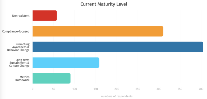 まず組織におけるセキュリティ認識向上プログラムについて、SANS Instituteではプログラムの成熟度(maturity)を次の5つのレベルに分けた上で、回答者の組織におけるプログラムがどのくらいのレベルにあるかを調査している。