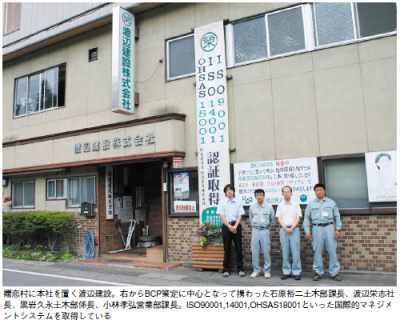 渡辺社長は「地域の建設会社がどんどん潰れ、除雪や災害対応を地域で行えない状況になっている中で、地域貢献企業である我々が生きていくにはBCPのような取り組みは不可欠。逆に、災害にも負けないように企業力を高めれば、田舎会社であっても都市企業に負けないはず。国はそうした企業に仕事を出したいと言っているのだと思います」と話している。