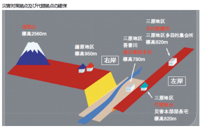 ただし、噴火の状況によっては、実際に全社員が集まれないケースも考えられる。実際、1783年(天命3年)の噴火では、溶岩や火砕流により、浅間山のふもとを流れる吾妻川の南側(右岸 浅間山側)を中心に大きな被害が出た。そこで、同社では万が一の場合でも、被害が少ないと考えられる吾妻川より北側(左岸)で、会社から1㎞以内に住む11人を緊急要員と指定。交通網が仮に機能しなくても彼らを中心に、初動にあたれる体制を整えている。