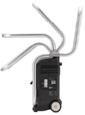 燃料をセットするには、カセットボンベをガイドに沿って2本差し込み、レバーを押さえて固定するだけ。初めての人や機械が苦手な人も手軽に、安心して使うことができる。また、凹凸が少ない縦型のスリムなデザインのため、余計な場所を取らず収納することができる。車載時には横倒しで置くことも可能だ。