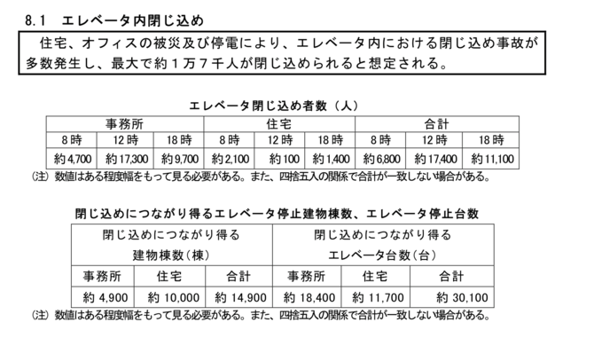 以下は首都直下地震の場合のエレベーター閉じ込め想定件数です。