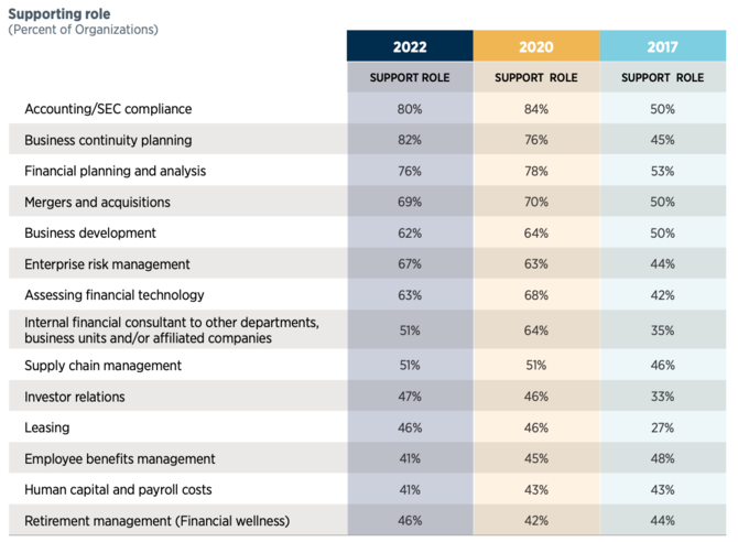 また図1では「Enterprise risk management」(ERP)という回答も同様に増加傾向にあることが分かる。本報告書では、トレジャリーがBusiness Continuity PlanningやERPに関して補助的な役割を果たすべきだと考えている理由として、トレジャリーが持つ特有の能力(skill)や分析的思考が役立つためだと指摘されている。確かに、前述のようにトレジャリーが資金管理に関するさまざまなリスク管理を本業としていることを考えれば、事業継続やERPに役立つ能力を備えていることも容易に想像できる。資金が組織の事業継続において必須の資源であることも含め、トレジャリーが組織の事業継続に寄与していくというのは理にかなっていると言えよう。