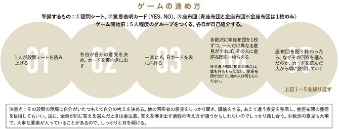 矢守氏は、ゲーム開発の目的について「実際の被災地では正解がない難問が流出する。その時々で意見の対立が起きてしまうが、あらかじめゲームを通じて多様な意見があることを知っておけば、その時、その場でみんなで正解をつくり出す力が養える」と話している。