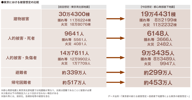 10年ぶり被害想定見直しの理由は二つ。一つは、対象とする地震を国の被害想定に合わせたことです。前回の都の被害想定は2012年公表ですが、これは東日本大震災を受けて、05年公表の想定を急きょ見直したもの。国もほぼ同時期に見直しに取り組み、都から1年遅れて13年に被害想定を公表しています。