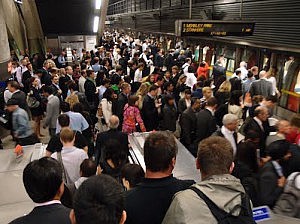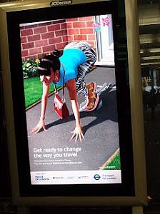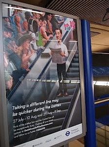 それでも、地下鉄や道路には、いたるところに、オリンピック期間中の混雑の回避を呼びかけるポスターや標識が設置されている(写真右)。