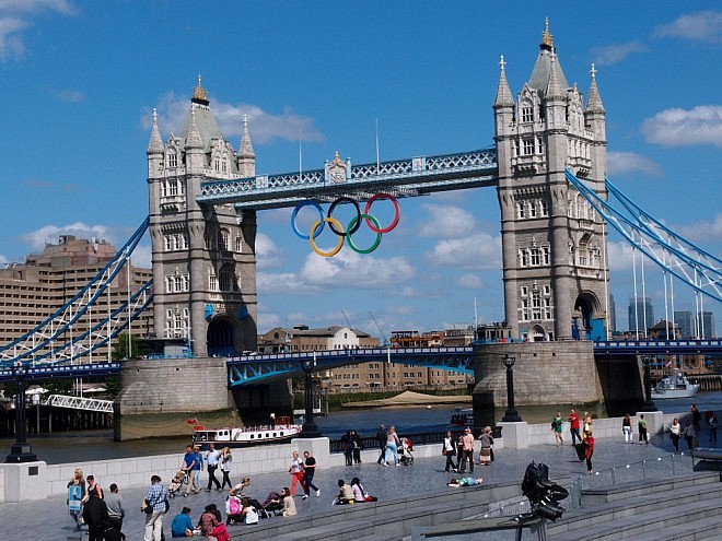 オリンピックに沸くロンドン。と、思いきや、開催1カ月前の6月末、市街地を歩いても五輪の旗はどこにも見当たらなかった。オリンピックらしい風景といえば、テムズ川に架かるタワーブリッジに飾られた大きな五輪のマークと、オックスフォードサーカスの繁華街に各国の国旗が掲げられているぐらいだった。