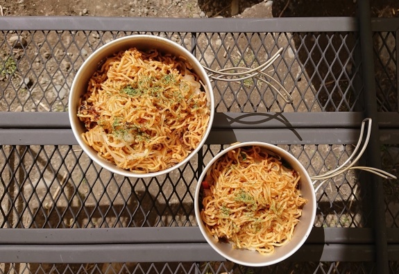 小枝でつくった箸は不格好で持ちにくく、皮をむいたばかりなので少し青臭さもありましたが、箸として使えないことはありません。彼は手づくりの箸でそのままラーメンをつくって食べました。「このワイルド感、まんざらでもないな…」と満足顔のハルトでした。