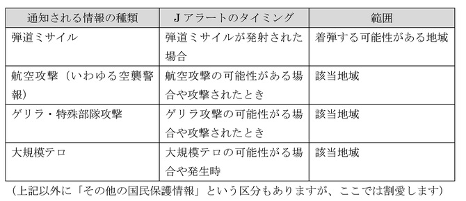 ■解説:Jアラートで伝達される情報の種類