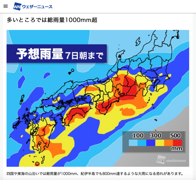ウェザーニュースでも5日は「週末にかけて歴史的大雨の恐れ 多発的な土砂災害・河川氾濫に警戒」として、「歴史的大雨」という言葉が使われました。