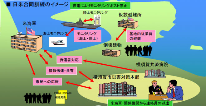 ■訓練参加機関:日本側:横須賀市、政府機関(外務省、内閣府、文部科学省、防衛省、海上自衛隊、海上保安庁)、神奈川県、神奈川県警察、横須賀共済病院