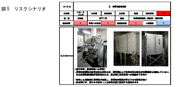 このようにして調査・検証した結果を「重要ファシリティの機能継続」の視点で評価して対策の優先順位づけを行う。評価項目としては、「そのリスクの発生確率」、「重要業務への影響度」、「復旧難易度」、「人命への影響」などがあげられる。