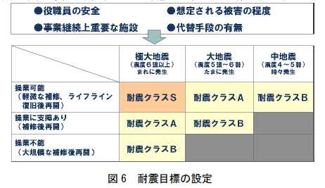 そうならないためには重要業務に関わるあらゆるリスクを洗い出し、事前対策を実施しなければならない。しかしすべてのリスクをゼロにすることは事実上不可能であり、限られた資金と期間の中で優先順位を付け段階的に実施することになる。そのためには、様々な耐震基準をベースに設備機器の機能維持、内外装材の落下・転倒・移動の防止などトータルでバランスのよい対策が必要となる。