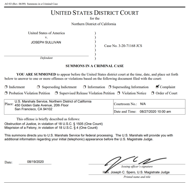ことはちょうど3年前に明るみに出ました。2020年8月27日のことです。1990年代の米国で第一世代のサイバー検察官として頭角を現し、その後サイバーセキュリティ業界の「ロックスター」として民間に華麗な転身を遂げたジョー・サリバン氏(Facebook社、Uber社、Cloudflare社のCISOを歴任)に対して召喚状が出されたのです。