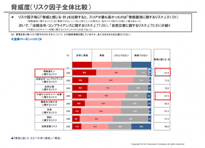 AIU保険調べ/脅威を感じる経営者が多数