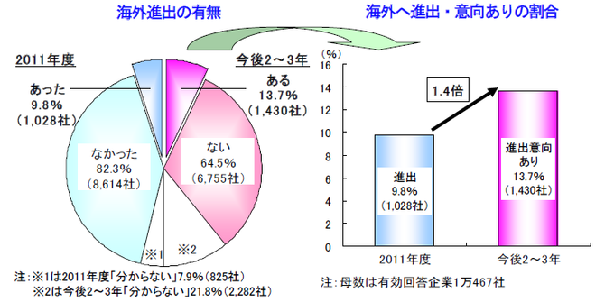 海外進出、今後3年内で2011年度比1.4倍の見込み
