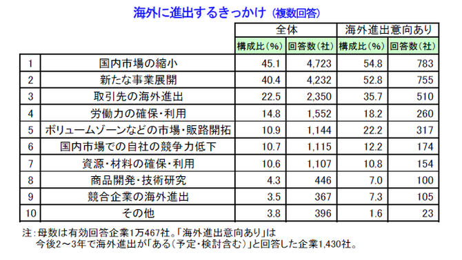 ■海外進出のきっかけ、「国内市場の縮小」が45.1%で最多