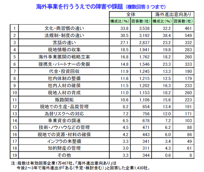 ~進出先の文化・商習慣や法規制・制度に大きなカベ、行政支援への期待も高く~