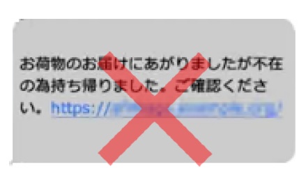 偽の不在通知SMSやメールを受信し、記載されているURL(アドレス)にアクセスすると、宅配業者を装った再配達受付の偽サイトに誘導されます。