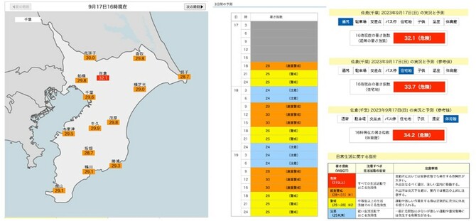環境省では来年度から一段上の情報である「熱中症特別警戒アラート」を発表する準備を進めています。「熱中症特別警戒アラート」の基準案としては「都道府県単位で、すべての観測地点において暑さ指数の予測値が35以上になった場合に発表する」方法が検討されています。熱中症関係における特別警報のようなものも準備されている点は押さえておきましょう。
