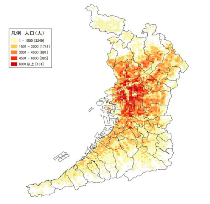 ●大阪府地域メッシュ統計からみた人口・世帯数