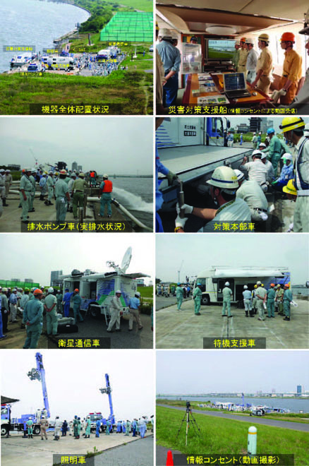 訓練には、災害発生時における自治体との円滑な支援や連携を図るため、関係自治体の職員も参加。東日本大震災の直轄管理施設の災害復旧や地方自治体の要請に基づき災害対策用機器による応援を行っており、今後も首都直下地震などの災害発生時には直轄管理施設の災害復旧とともに地方自治体への支援活動を行うとした。