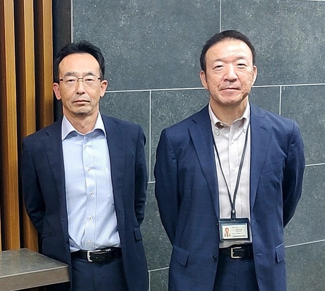 飛島建設の赤尾正晃氏(右)、ネクストフィールドの大堀裕康氏