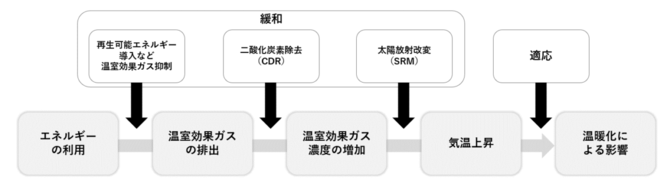 こうした状況の中、気候システムに対して工学的な介入をすることによって気候変動による影響を軽減しようとする「気候工学」が注目を浴びています。その中に主に2つの手法があります。1つは大気から、温室効果ガスの代表格である二酸化炭素を直接回収する「二酸化炭素除去(CDR : Carbon Dioxide Removal)」、もう1つが直接に大気を冷却する技術である「太陽放射改変(SRM : Solar Radiation Modification)」です。