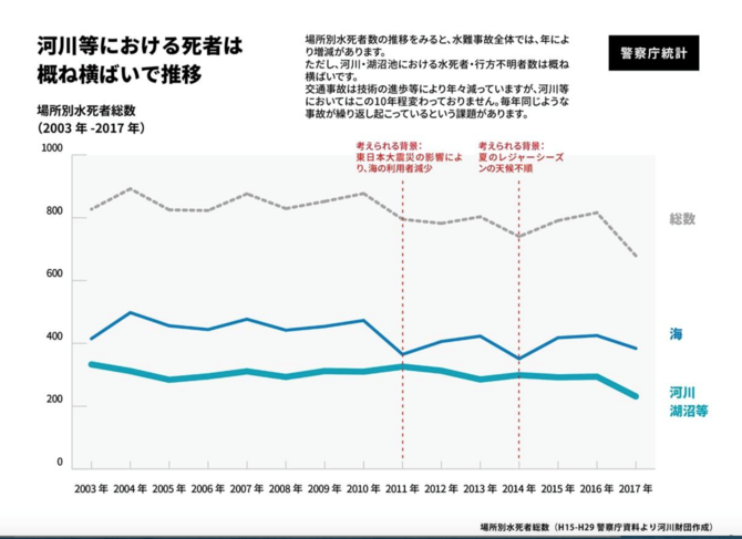 ライフジャケットをつけていても危険な場所はありますが、9割が単純溺水と言われる川の事故では、9割は助かった可能性があったということです。