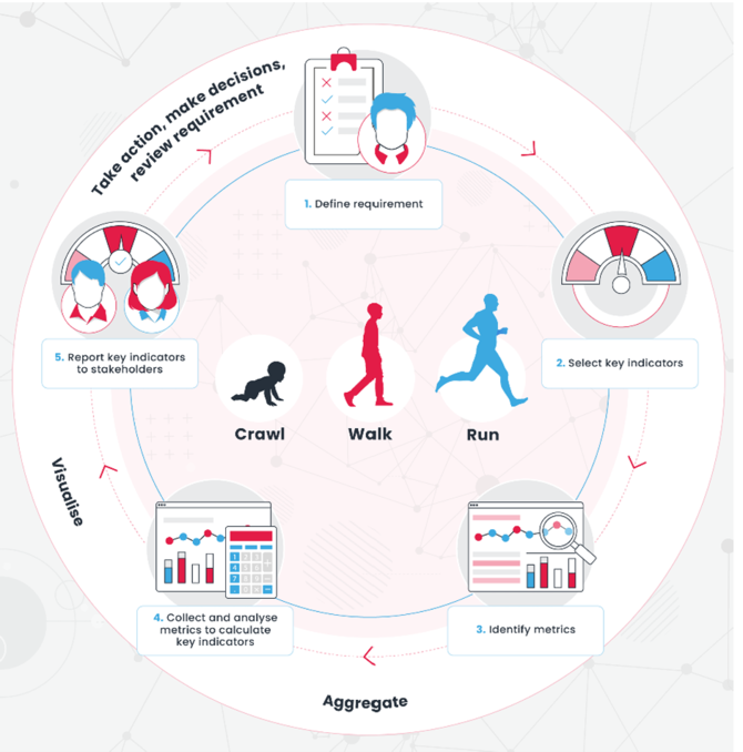 セキュリティの測定に関する研究から我々が理解した、押さえるべきツボの一つは、測定結果は、意思決定や行動を促すような、本質を突いたものであるべきというものでした。そこで、意思決定に関与する立場の方々との継続的な対話を通じて何を欲しているかを押さえることで、会社の情報リスクの測定能力やセキュリティのパフォーマンスを持続的に高めることに役立つ、測定サイクルという概念をまとめました(下の図を参照)。それでも、データが何を語っているのかなど、そもそも聞きたくないという意思決定者であった場合にはどうなるのでしょうか。そうなると、セキュリティを実際に測定するというだけでなく、道徳的あるいは倫理的にやっかいな話にも対応しないといけなくなります。