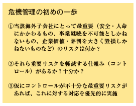 リスクマネジメント体制が構築できていない海外子会社らの危機を管理するにはどうしたらいいのか?