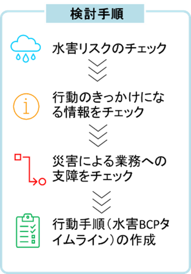 左図は検討手順です。今回は「災害による業務への支障チェック」をご紹介します。