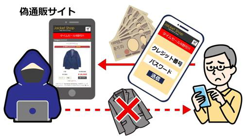 インターネット上の安売りの広告等から誘導して、商品を送らずに代金を騙し取ったり、入力させた個人情報やクレジットカード情報を盗む詐欺。