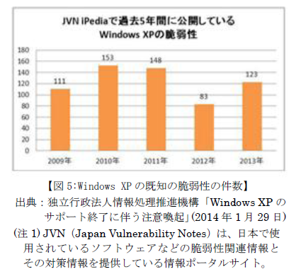 また、図5からもわかるように過去5年間において、「Windows XP」の脆弱性は継続的に発見されて