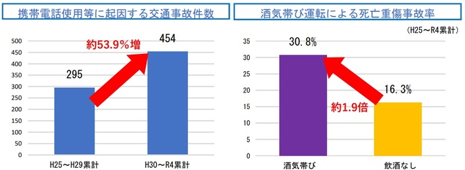 こうした状況を踏まえて、道路交通法の改正法(令和6年5月24日公布)では、自転車関連事故の発生防止を目的として、「ながらスマホ」の禁止と罰則化、「酒気帯び運転」の罰則化が盛り込まれることになりました。