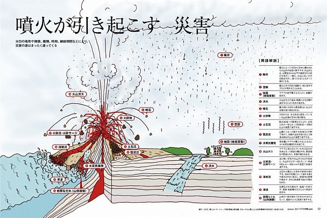 もう1つが、噴火の継続時期。数時間で終わるものから数年間、数十年間続くものなどさまざま。やっかいなのは、一度噴火をしてもその継続時間や、その後の推移を簡単には予想できないことだ。